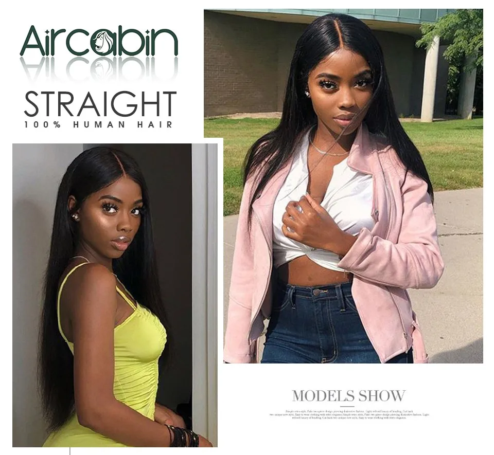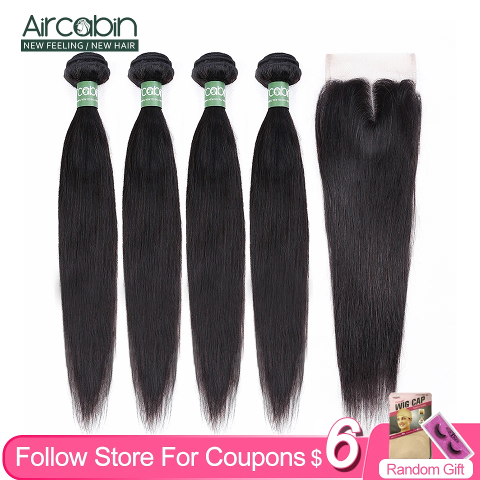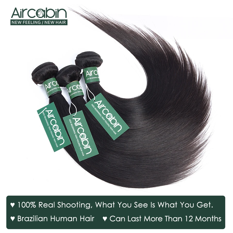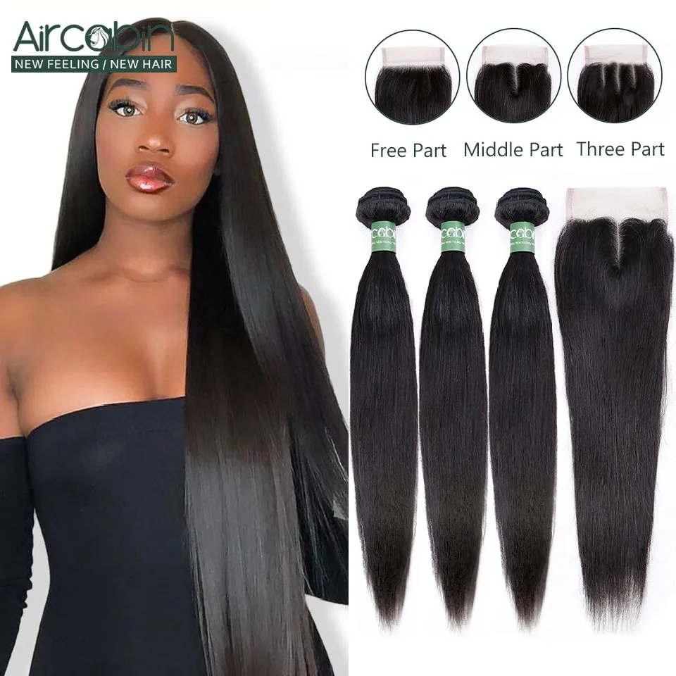 Aircabin Straight Bundles With Swiss Lace Closure Brazilian Remy Human Hair Extension Natural Color Fast Shipping Can Be Bleach
