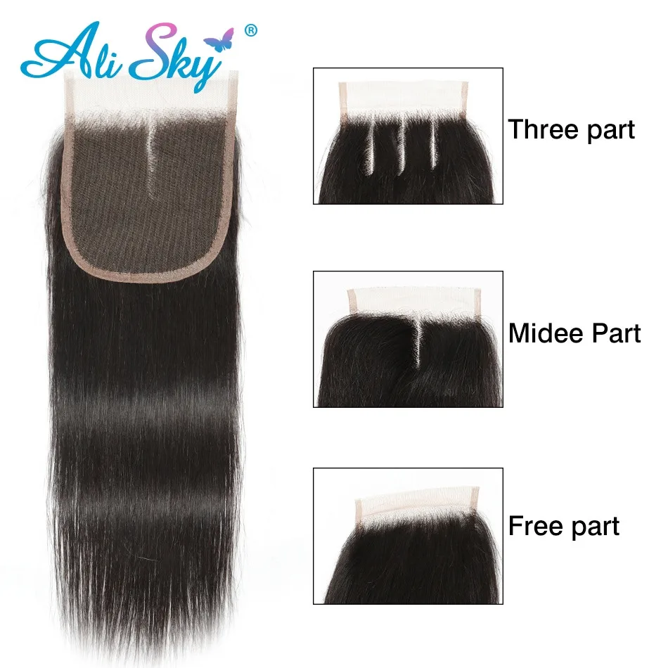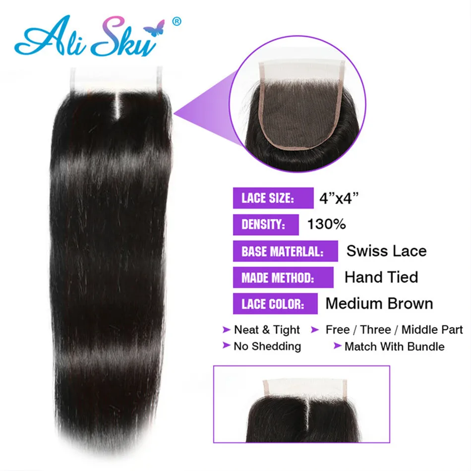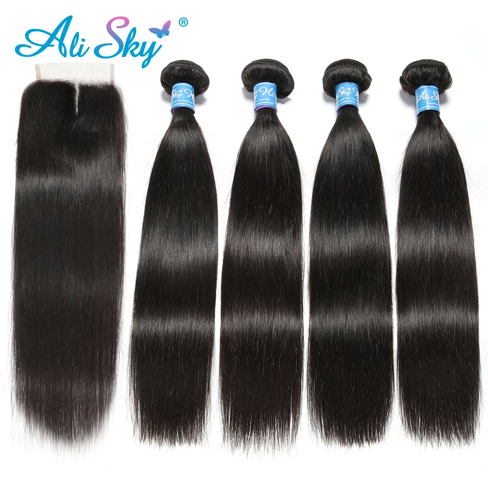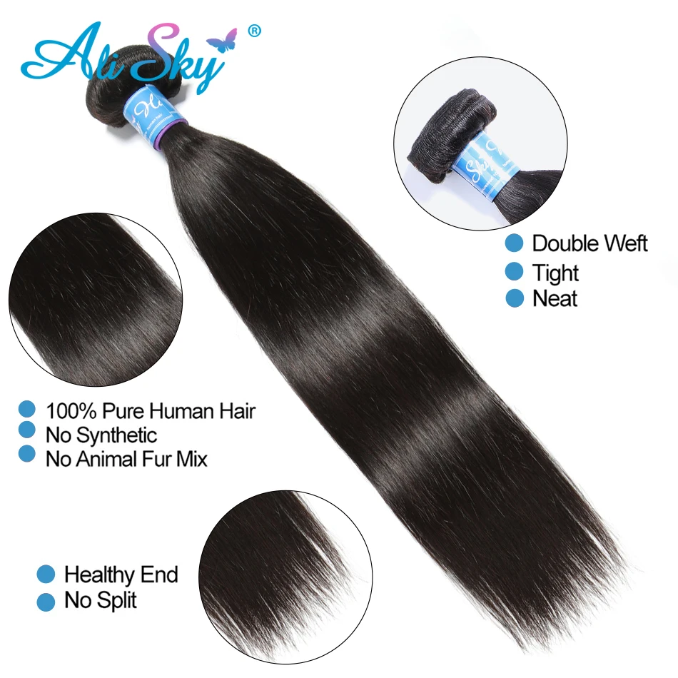 Alisky Straight Hair Bundles With Closure Brazilian Hair Weave Bundles With Closure Remy Human Hair Bundles With Frontal Closure