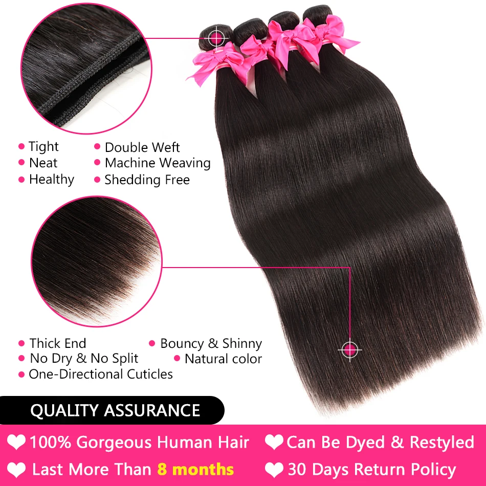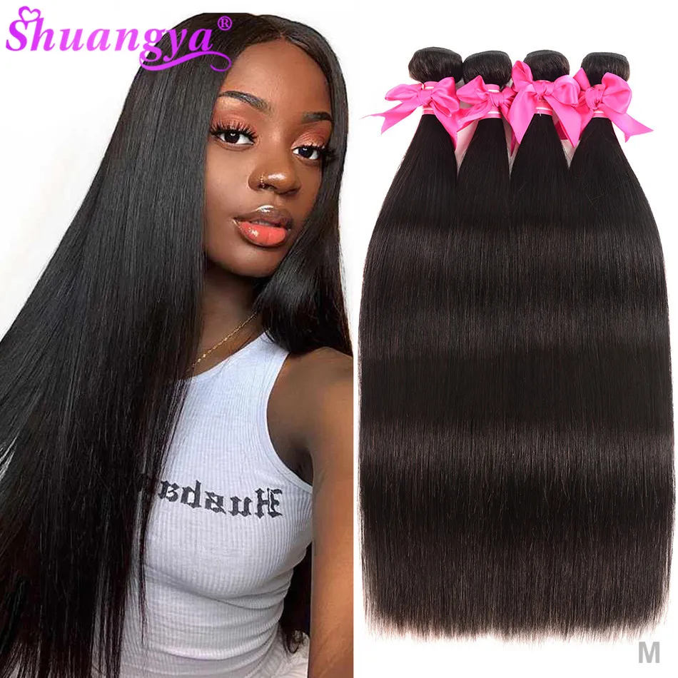 Shuangya Hair Brazilian Straight Hair Bundles 1/3 Or 4 PCS Human Hair Bundles 8-28 Inch Hair Extension Remy Hair Weave Bundles