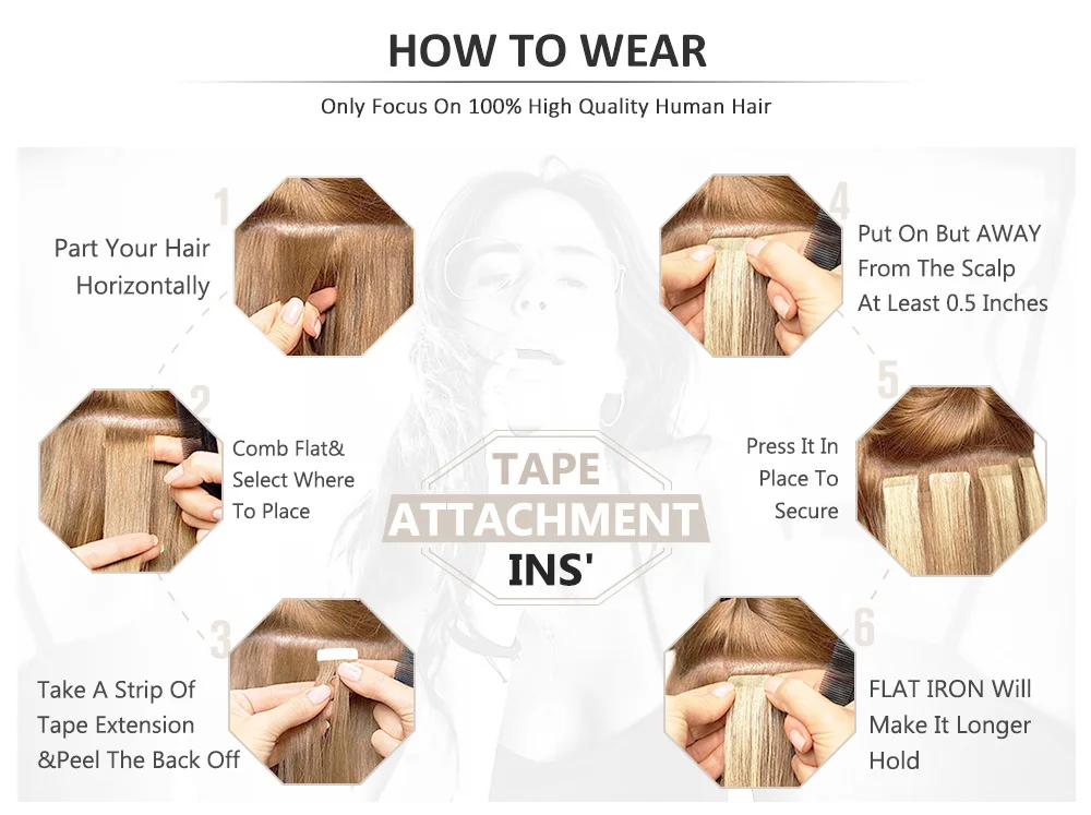 Q: What is The Special Treatment for Full Shine Tape Extensions?A: Do not wash hair for 3 days after you first install it. Use mid shampoo to lukewarm water and twist hair. And never use a hairdryer or tongs too hot. Please also remember to apply the hair on the clean and unconditioned hair. For better performance, please heat the tape before you apply it.