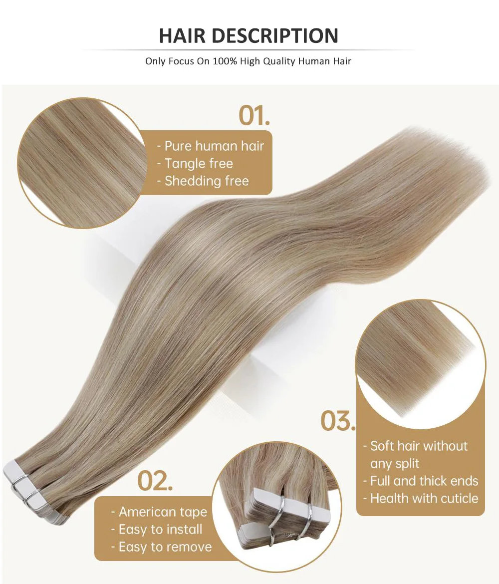 Be the first to review “Full Shine Tape In Human Hair Extensions Balayage Omber Color Blonde Real Remy Natural Human Hair Skin Weft Adhesive For Salon”