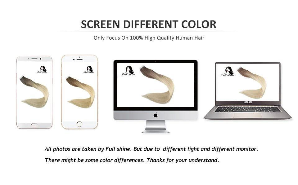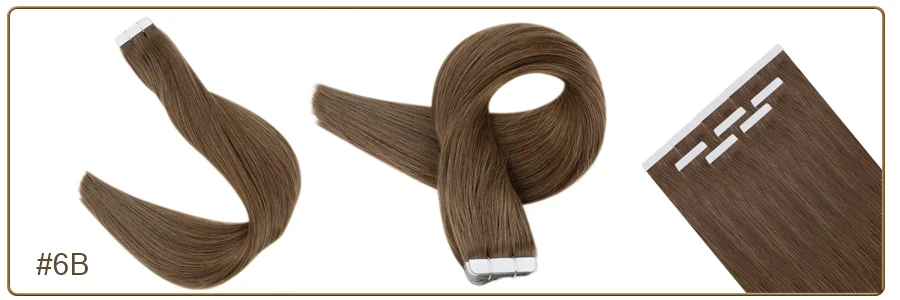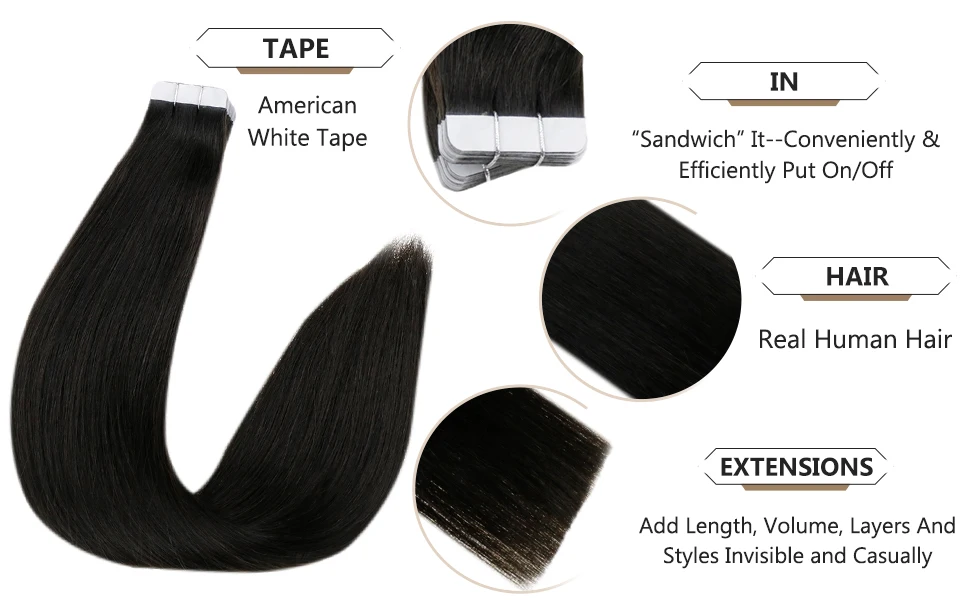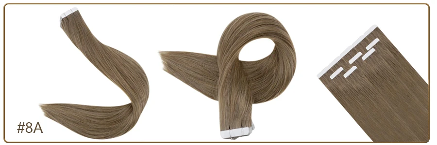 A: Full shine tape in hair extensions use the most durable white tape. And it is secure and comfortable tape. Full shine tape in hair extensions is the most popular method in salons. Tape hair extensions is 100% natural and it requires no tools or chemicals. It takes less than an hour to apply the entire head with zero damage.