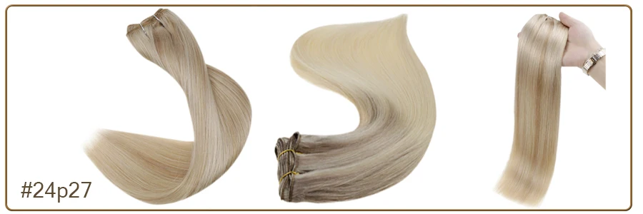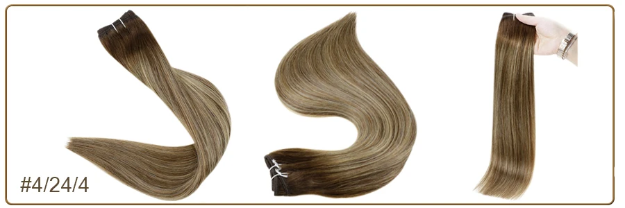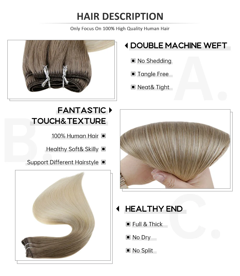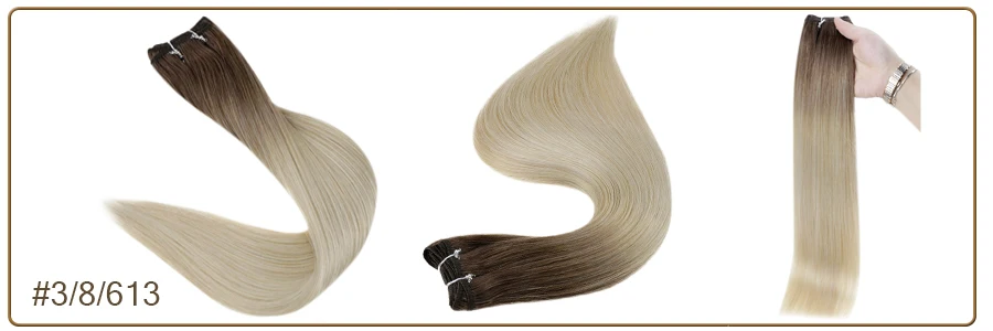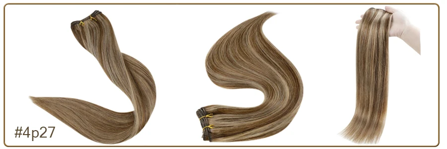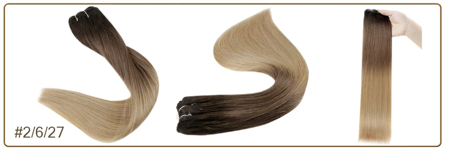 Full Shine Weft Human Hair Extension Balayage Color 100g Sew In Bundles Silky Straight Human Hair Machine Remy Skin Double Weft