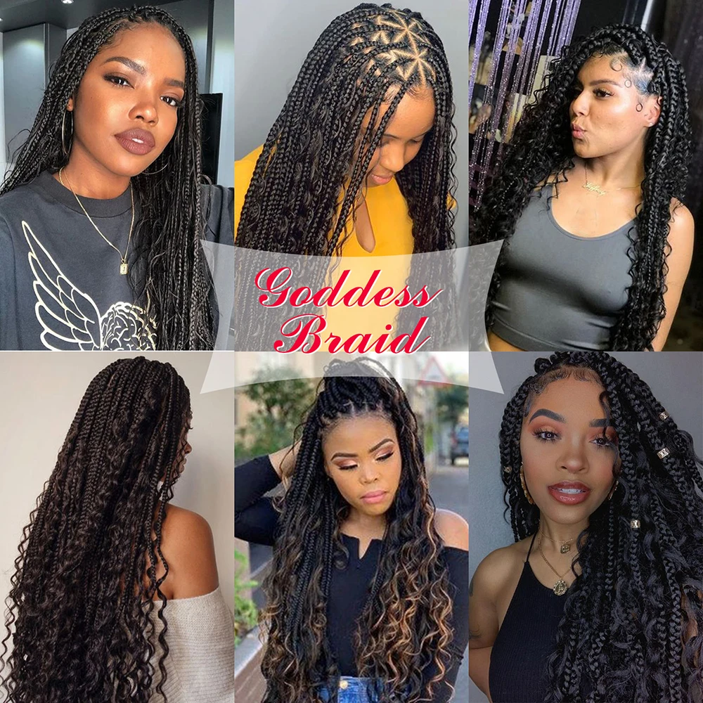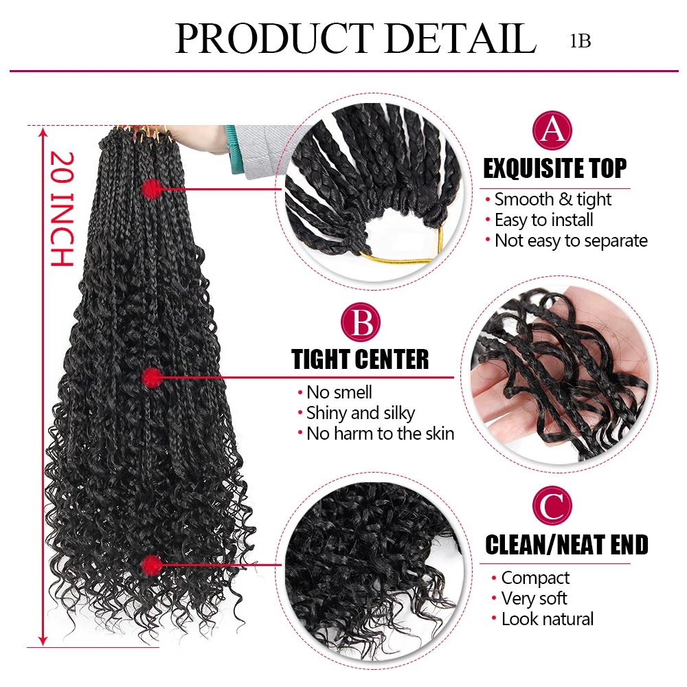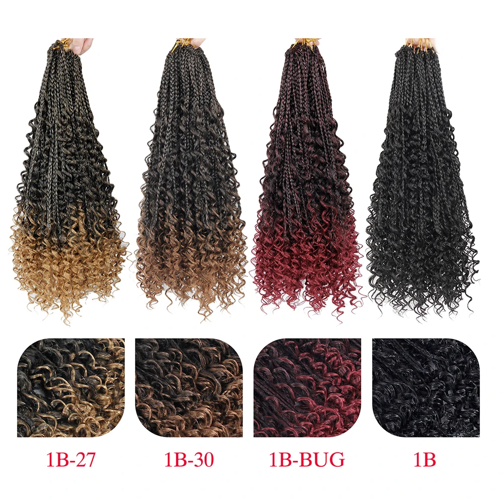 Goddess Hair Box Braids Synthetic Crochet Hair curly Bohemian Hair With Curls Boho Braided Hair Extension 22inch