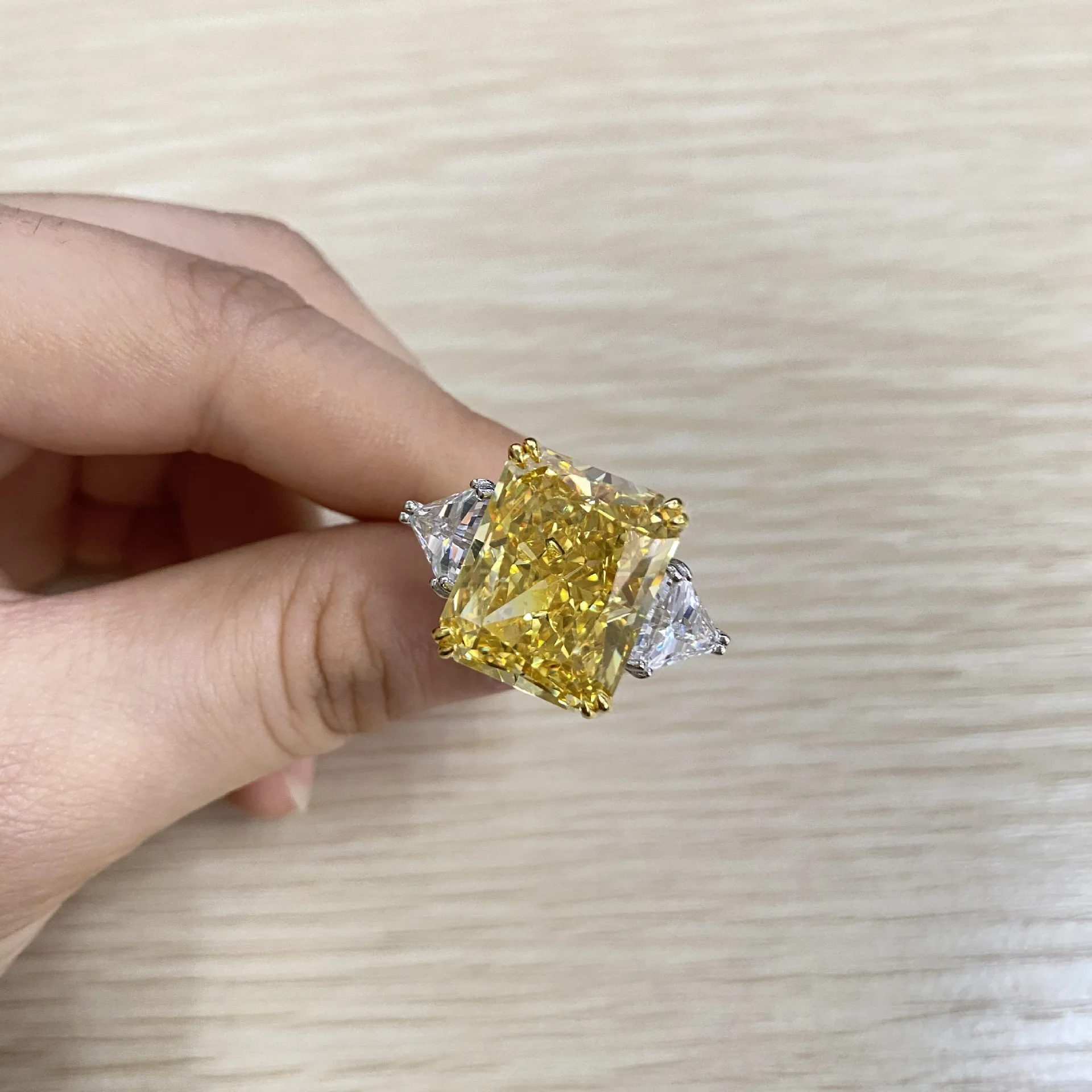 Jewepisode 100% 925 Sterling Silver Created Moissanite Diamond Citrine Wedding Engagement Rings for Women Fine Jewelry Wholesale