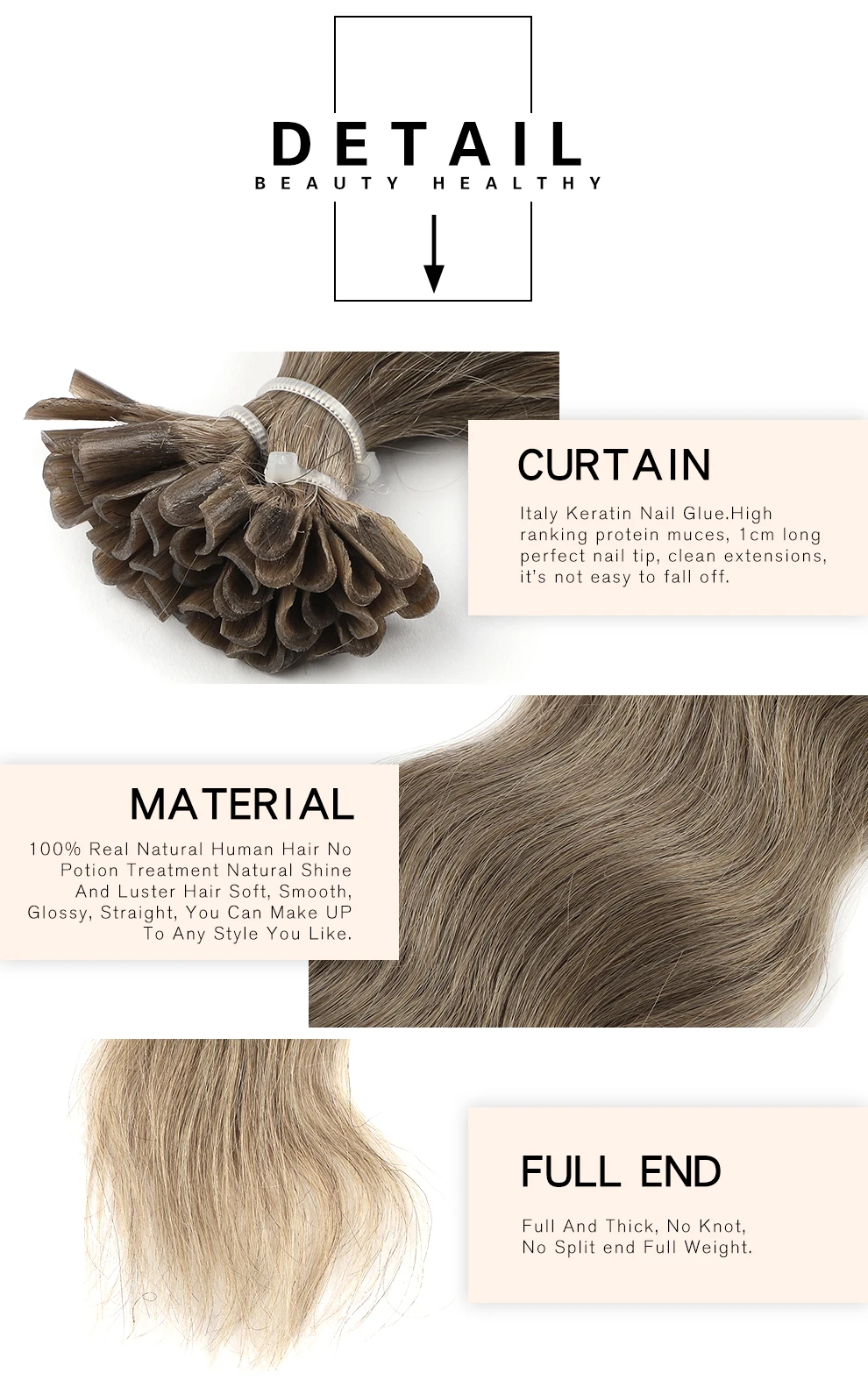 K.S WIGS 20” 1g/s Keratin Pre bonded Capsule Natural Wave Nail U Tip Human Hair Extensions Machine Made Remy Fusion Hair