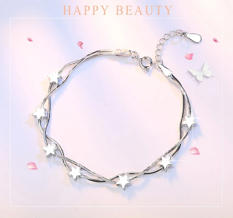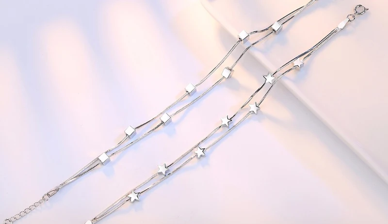 Be the first to review “LMNZB 100% 925 Solid Silver Bracelet Square Box Star Double Chain Adjustable Bracelet Anklet For Women Pulseira LSLK22”