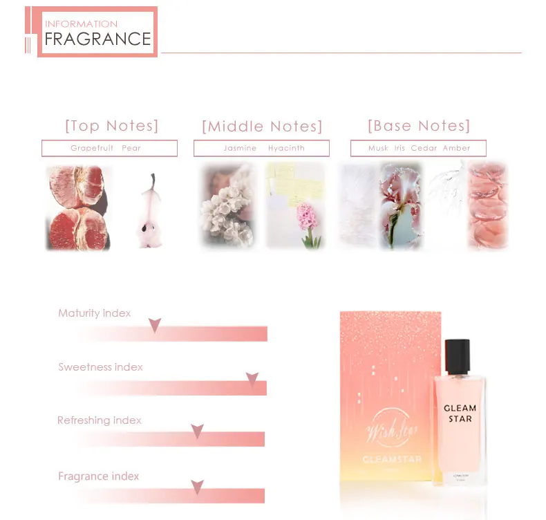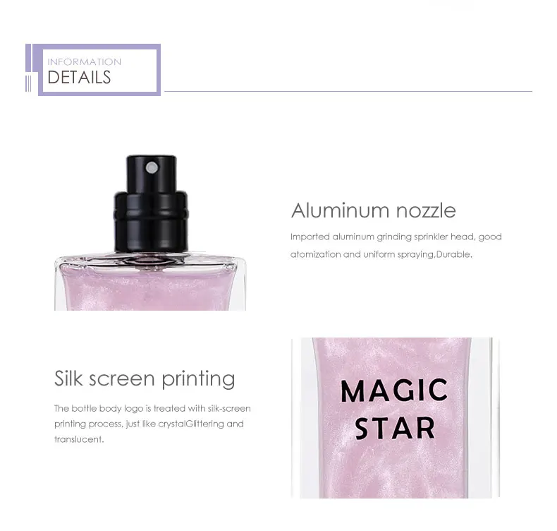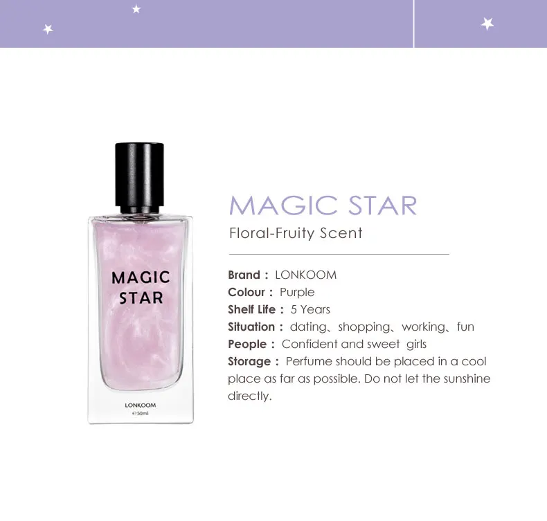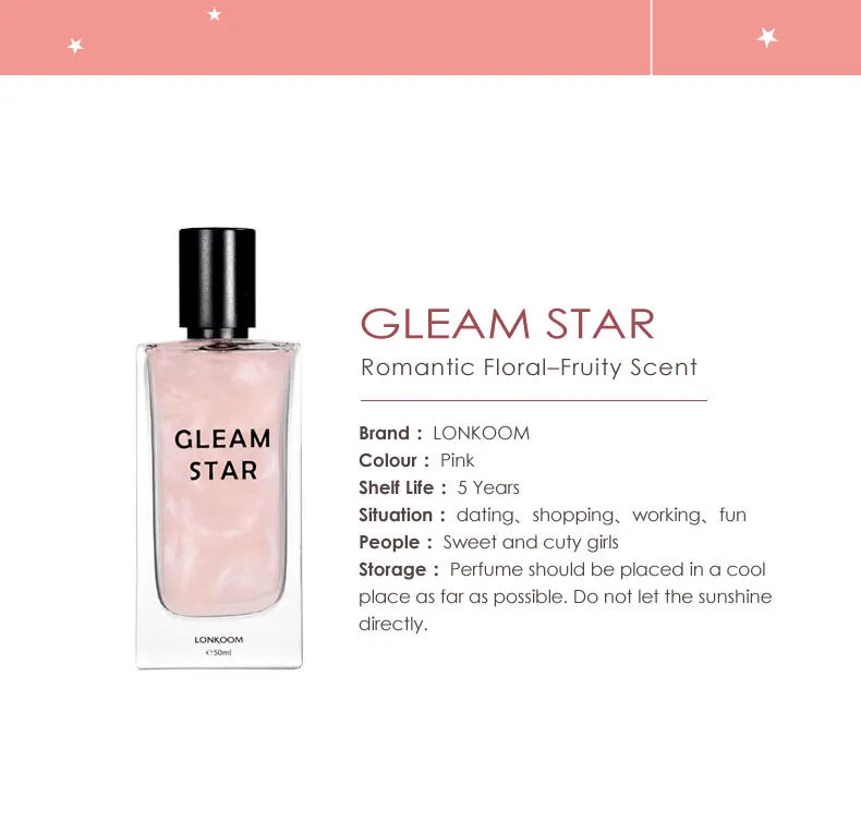 LONKOOM Brand women perfume sample 50ml GLEAM STAR EDT pink shinny fragrance floral-fruity scents