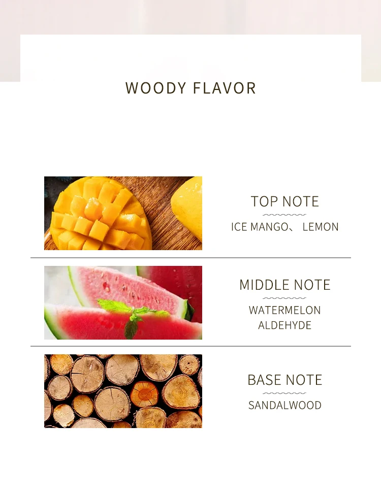 Top notes: ice mango, citrus aldehyde, lemon, sage, juicy fruit