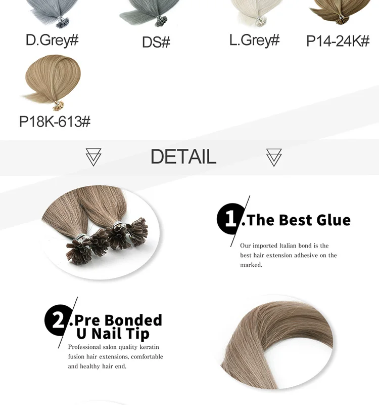 Item Type: Nail/ U Nail/ Nail Tip Pre Bonded Hair Extensions, Remy U Tip Human Hair