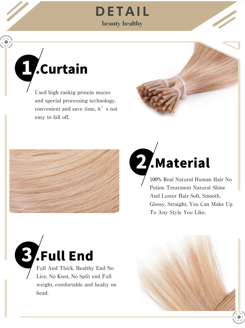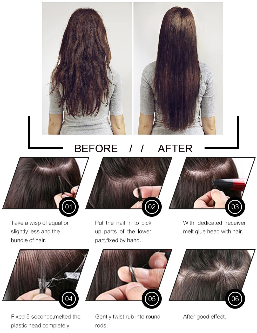 Item type: Human Fusion Hair, I Tip Hair, Stick Hair Extensions