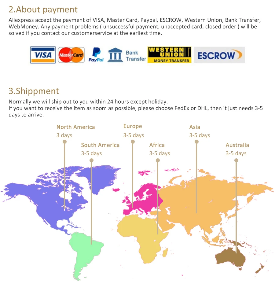 Dispatch Time: Within 48 hours after the payment confirmed except holidays.
