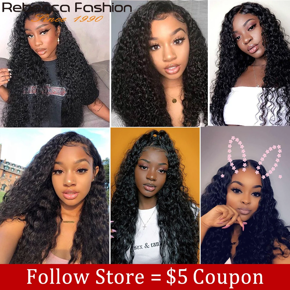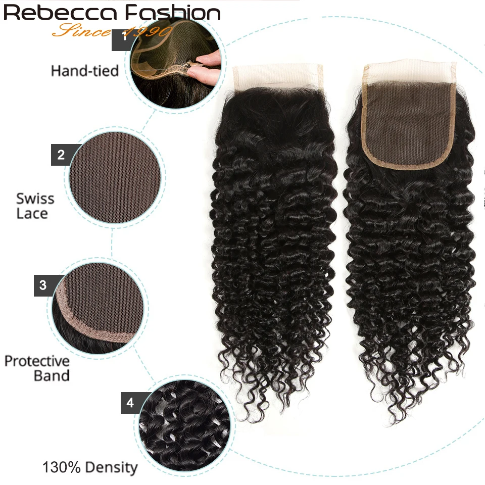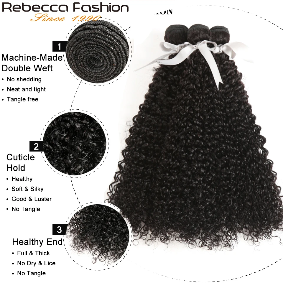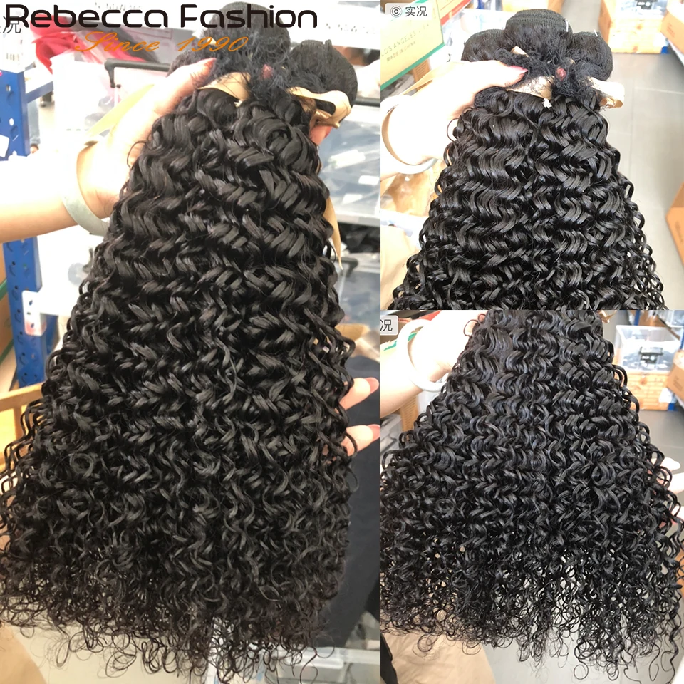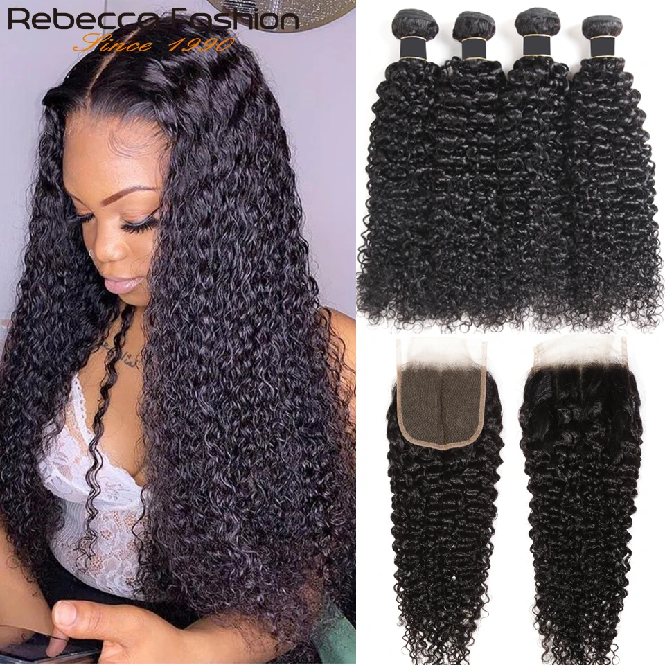 Rebecca Kinky Curly 3 Bundles With Closure Remy Human Hair Weave Extensions Brazilian Curly Hair Bundles With Closure