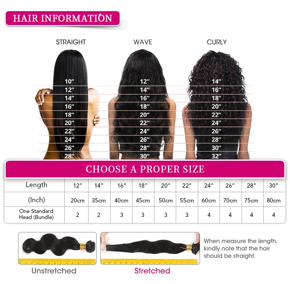 Usually 3 Bundles Can Make A Full Head. Above 20inch, Recommend 4 Bundles.