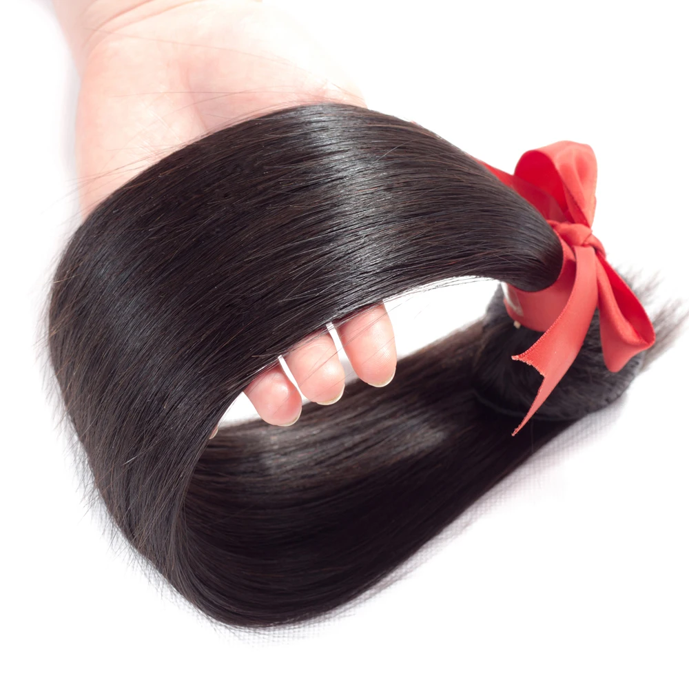 Brazilian Straight Human Hair Bundles With 13*4 Lace Closure