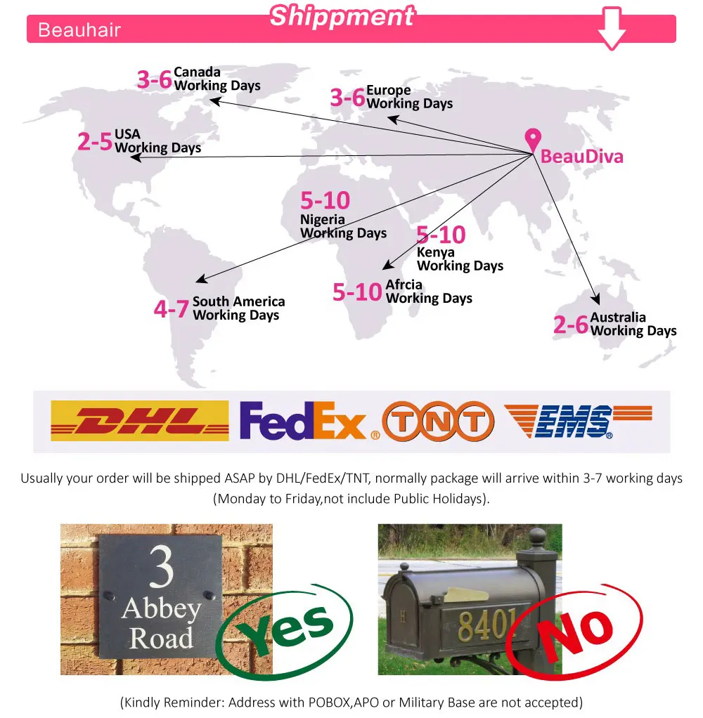 10.Delivery Time: Express Shipping By DHL/Fedex/UPS/TNT Within 3-7 Days
